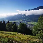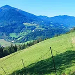 Die 1-Zimmer- Hochbergerhof verfügt über private Parkplätze und eine Terrasse mit Aussicht auf die Berge.